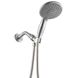 Ana Bath Handheld Shower System gives you the easiest way to upgrade your shower system without any tool.No power drill, no screwdrivers, just your hands.With the 5 inch 5 function handheld shower, you can feel a whole new fantastic shower experience with our water saving shower technology which is another way to save your water bill.The whole package includes MHS5010 (5-function 5" handheld shower with saturating spray, massage spray, bubbling spray, saturating spray & massage spray, saturating spray & bubbling spray.Flow rate: 1.87 GPM (Gallon per Minute) / 7.07 LPM (Liter per Minute) @ 80psi.*Flow rate < 2.5 GPM / 9.45 LPM @ water pressure of 80 psi meets CSA Standard. *Flow rate < 2 GPM / 7.56 LPM @ water pressure of 80 psi meets WaterSense standard.), WB2030 (Wall arm mount), S21542 (60" stainless steel shower hose. Double hooked, Ø0.55", anti-twist brass conical nut & brass hex nut)* PVD Brushed Nickel Finish for Whole Set (Handheld shower, wall arm mount, and shower hose) (The additional PVD coating process provides better corrosion resistance, more uniform deposit, brighter, harder, and smoother surface, and is more environmental protected-no harmful chemicals to deposit of.)* Lifetime Warranty