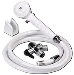 Easy to install. Control flow and direction of water while sitting or standing in shower or bathtub. On/off valve right on the handle for easy water control. Existing shower head or hand held shower spray can be used with diverter valve (included). Easily convert your current shower head into a hand held shower spray. 80" white reinforced nylon hose. Comes with a diverter valve that allows use with either traditional shower head or shower spray with on/off switch.Color: White
