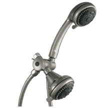 NATUREMIST" SHOWER HEADDual head shower kit Includes 5 function hand held, 5 function fixed head, chrome 6' hose, three-way diverter and mount Finish : Brushed Nickel